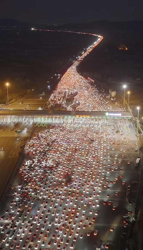 中国最大的吴庄收费站迎来中西部千万游子星夜兼程,过境安徽奔赴江浙沪,愿每一位背井离乡的游子一路顺风